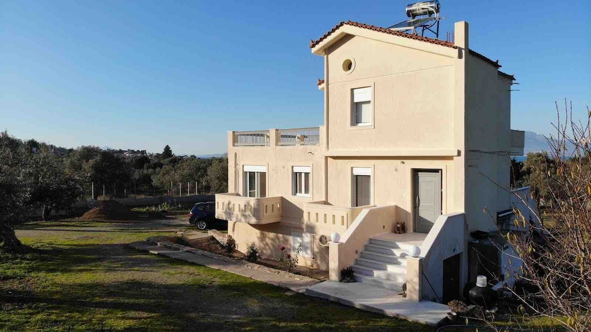 Welcome to Meda House, a place you can easily call home. Ideal for groups or families, the house has 2 floors with different entrances. Simply decorated with rustic nuances, our house has 2 bedrooms, 2 bathrooms, 1 living room, a fully equipped kitchen and 2 balconies from where you can enjoy a wonderful view... On the left you can admire the imposing mountains and ahead the Aegean Sea. During spring and summer the smell of orange and lemon blossoms from our garden will spoil your senses...