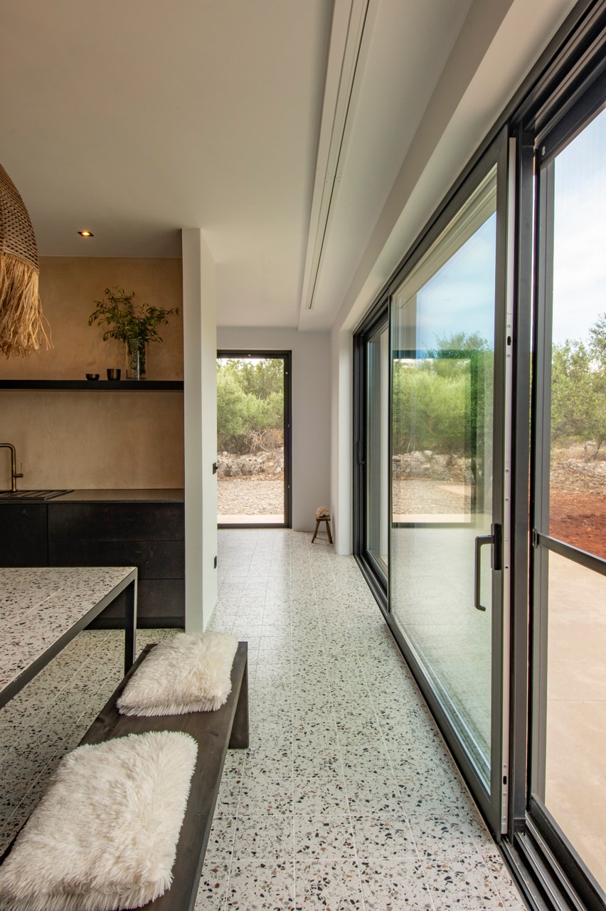Surrounded by olive trees and with a breathtaking panoramic view, this solar powered house will not cease to surprise you! Kitchen and living room are not separated by any wall and this creates an open and comfortable environment. We grow our food in an organic way and we have 8 chickens and 2 goats, which provide us with fresh milk and eggs every day. So don't waste your time in crowded resorts and boring apartments. Come stay at our home, meet our charming goats and experience something new!