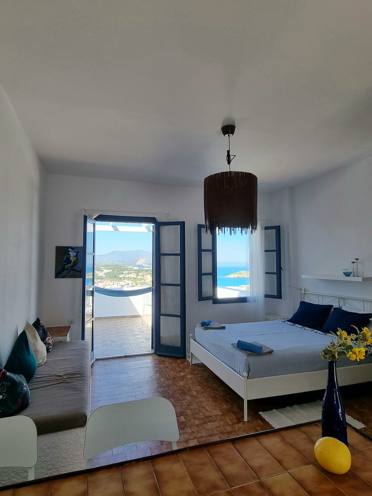 This Private suite has fantastic sea and mountain views. It has a kitchen, all utensils, a bathroom, a big living room, large private balcony with marvelous views. Very private, comfortable, and stylish. You will feel at home. With the amazing sea view. Quiet retreat away from the bustle, 7 min walk to amazing Almyrida sandy beach, shops, and restaurants. The best taverna with homemade food a few steps away. 7olivescrete Close to Samaria gorge, Balos, Elafonisi beaches, Chania and Rethymno.