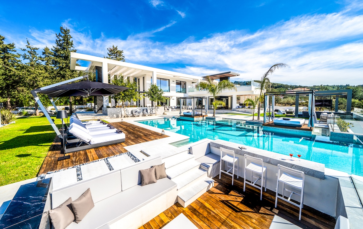 Nestled in the tranquil Pigianos Kampos, this design-led villa comfortably accommodates up to 18 guests with eight en-suite bedrooms across 380m² of indoor space. Seamlessly connecting to 600m² of curated outdoor living, it features a state-of-the-art private pool with children’s area, hydromassage jets, swim-up sunbeds, and an in-pool lounge. Additional amenities include a cinema room, gym, sauna, ping pong table, and a stunning outdoor dining pavilion, perfect for family and friends.