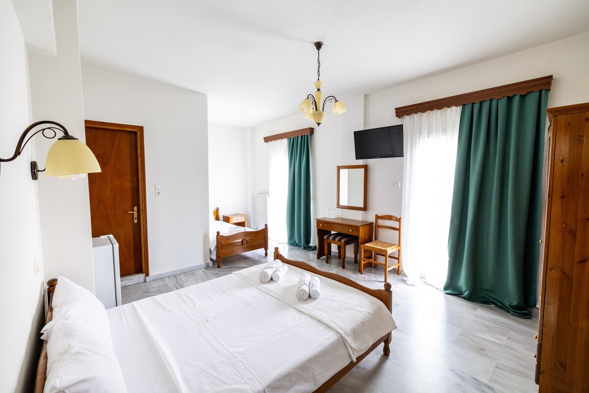 舒适的三人间,带阳台和山景