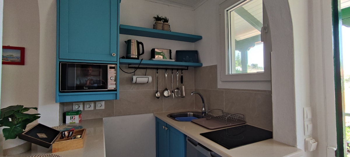 Greek Ministry of Tourism. Authorised Licence No. 35807 & 36876 Yorgos studio is set in a private and well tended gardens and located at the rear of Lakka's village. The studio is self contained with a private terrace at the front facing garden with an abundance of flowering shrubs and small fruit trees. It is close to restaurants and the beaches and family-friendly activities. Yorgos Studio is ideal for couples, solo adventurers, and business travelers.