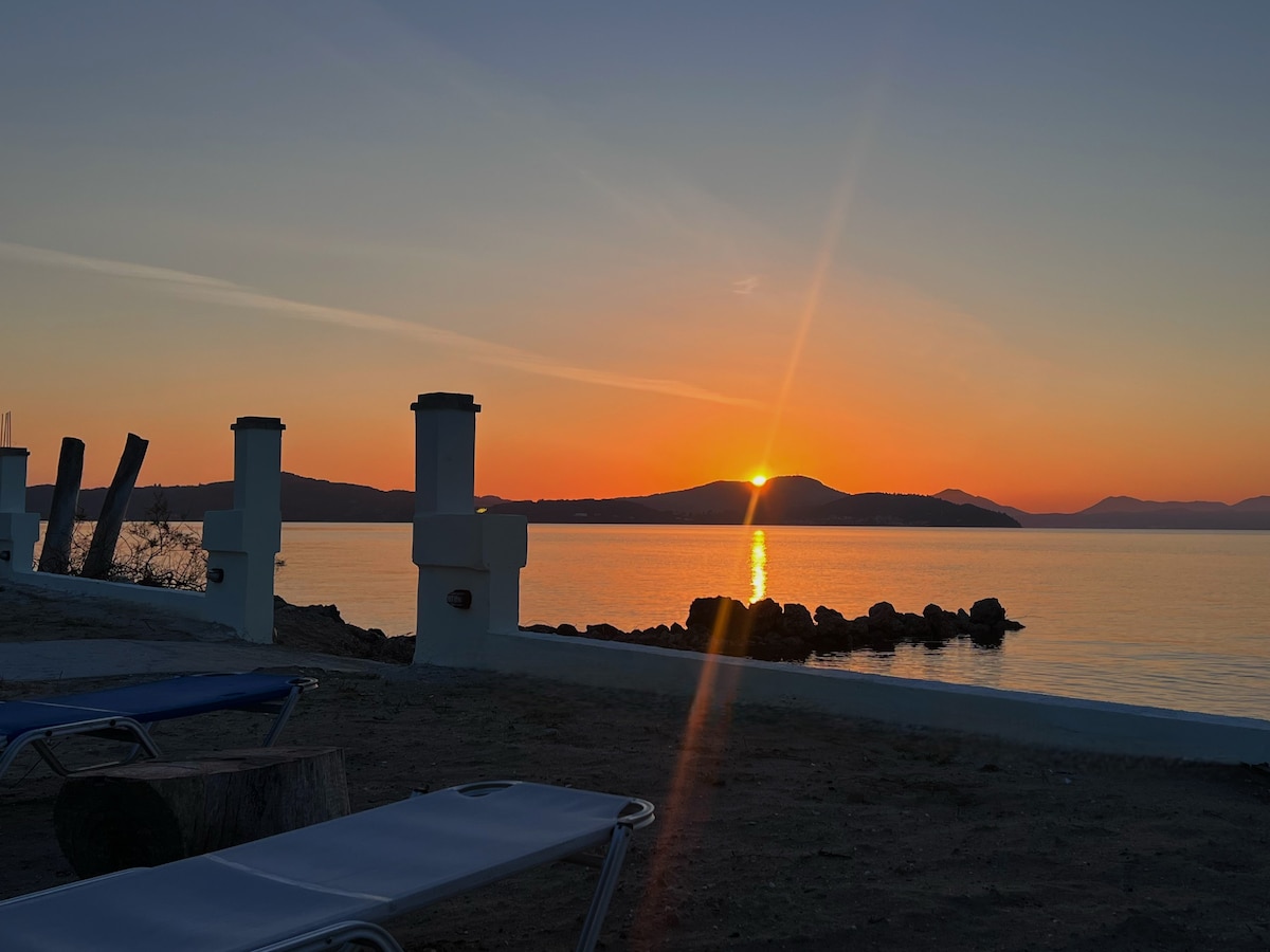 Home "Maro" is located on the beach Alykes in a very traditional village . It's an old beach house lovingly renovated. A big garden with veranda leads you straight to the beach for unforgettable sunsets!!!