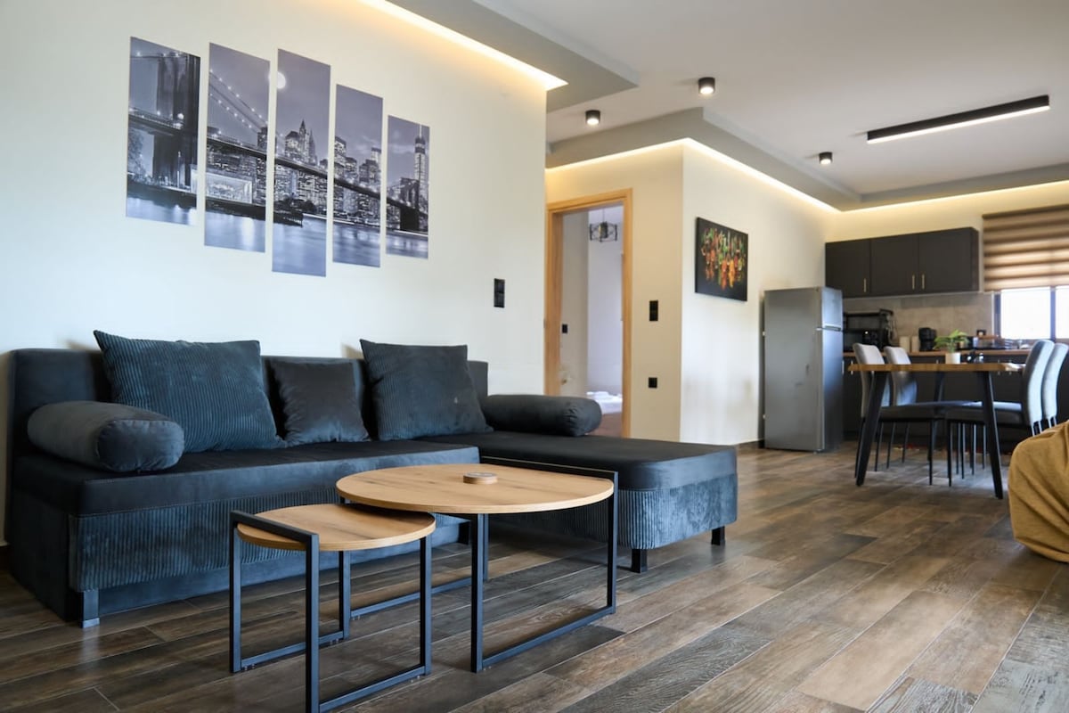 Ste's appartment in Thermi is only 2.7 km from Makedonia Airport (SKG). Two bedrooms, comfortable living room with fireplace, fully equipped kitchen, renovated bathroom and balcony with an amazing view. Close to Mediterranean Cosmos(the biggest shopping mall in the Balkans)Regency Casino, International Hellenic University and the European Interbalkan Medical Center. Close to the beach of Perea and Epanomi. Suitable for one night or long term stays!