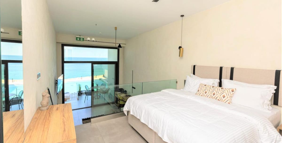 The whole group will be comfortable in this spacious and unique space by the ocean. Zeus is beachfront apartment with a spacious private balcony you'll love from the first second. It's ideal for families or couples seeking privacy and a unique experience. Enjoy a spacious suite with a modern design, high-end mattresses, a fully-equipped kitchen, and a private balcony for your most precious moments. With stunning sunsets, this is the ideal place to relax and enjoy your vacation by the sea.