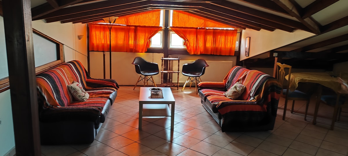 Είναι μια άνετη σοφίτα (αυτόνομο διαμέρισμα) 500 μέτρα από την κεντρική πλατεία. Η γειτονιά είναι ασφαλής, η πολυκατοικία είναι με λίγα διαμερίσματα μένω και εγώ στην ίδια πολυκατοικία και είμαι διαθέσιμη για ότι χρειαστεί ο επισκέπτης.