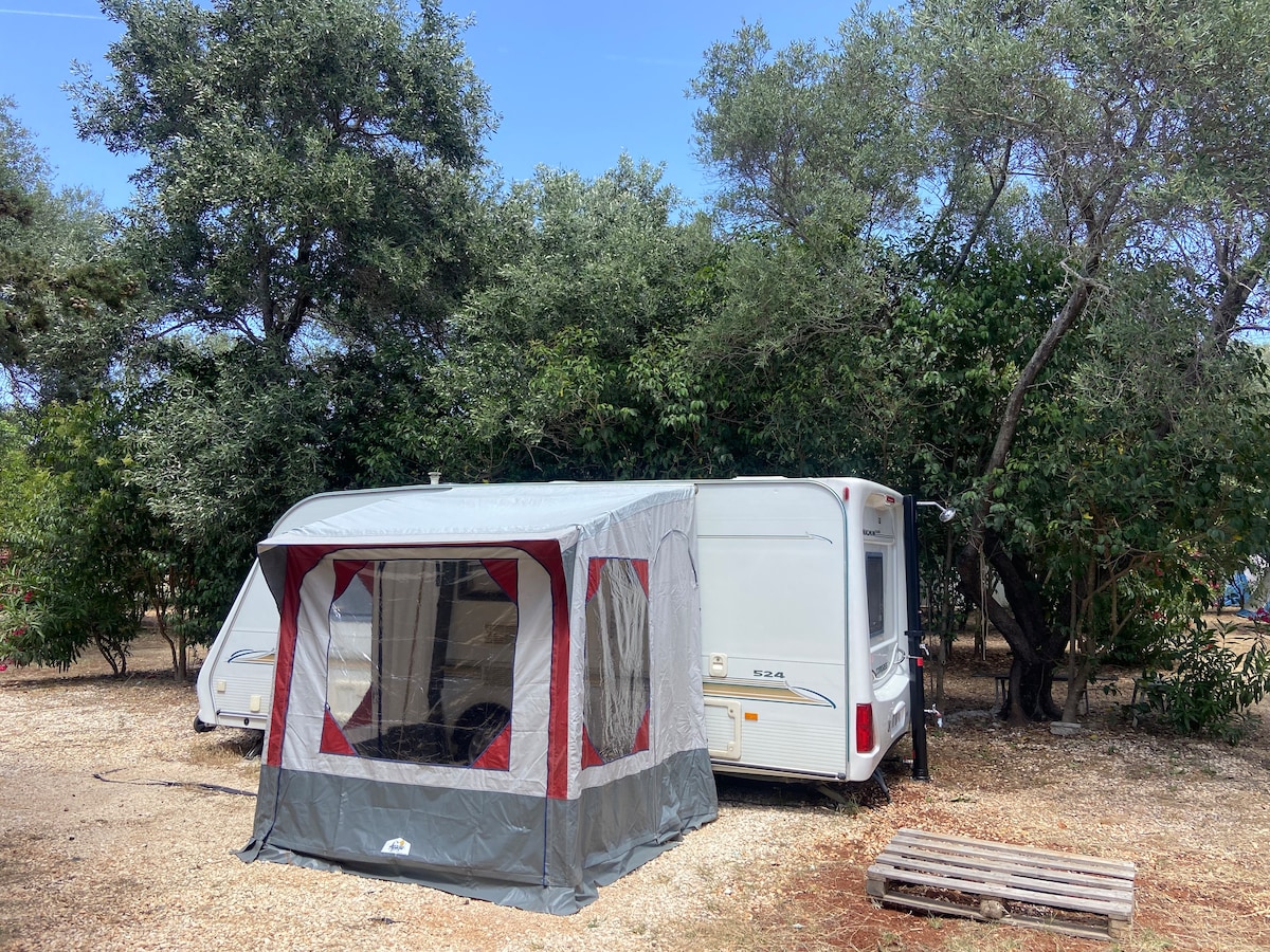 The caravan is located at the end of zante town ,perfect for two people. It offers the combination of staying in and out of town, at the same time. Super quitness and easy access to town and beaches.5 minutes from city center,10 minutes from kalamaki and laganas ,with a Car or Scooter. Enjoy the farm and the garden around.The mattress provides super sleep and relaxation.Please have in mind that the kitchen is Out Of Order(!) because there it works with gas and it's a matter of security.