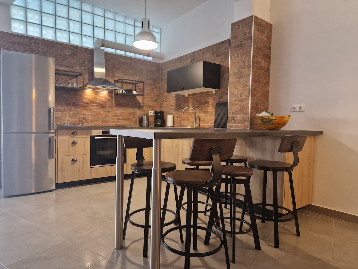 Step into a home where the industrial-chic design of soft grey tones and wooden fixtures is complemented by bright pops of color. Try cooking with local foods in the kitchen and sink into the comfortable sofa after a day of sightseeing. License/registration number: 3089588 Upon your arrival, payment of the climate resilience fee, in accordance with the legislation (Law 5073/2023,FEK:B7535/31.12.2023), of €8 per night, is required from April to October A receipt will be provided.
