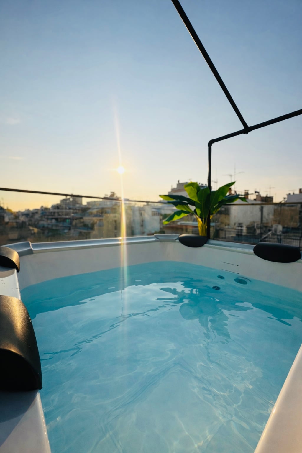This bright and beautifully decorated 90m² semi-basement apartment blends modern comfort with artistic charm for a warm, homey feel. Perfect for couples, families, or friends, it’s located in one of Athens’ oldest central neighborhoods, just a short walk from the Acropolis and Ancient Agora. Guests can also enjoy the shared rooftop terrace with its stunning Acropolis view, a coffee, a glass of wine, or a relaxing soak in the hot tub.