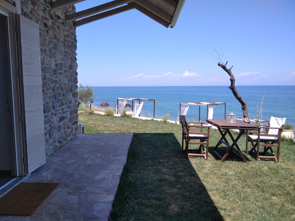 Relax in this peaceful beachfront apartment , within 2 hours driving from Athens. Apartment is on the first floor and it has 1 bedroom with double bed and Air condition 1 bedroom with 2 single beds 1 bedroom with 3 single beds Air condition 2 bathrooms 1 living room Front balcony with view and outdoor Kitchen Rear balcony Garden - Barbeque area Washing machine in the basement Free parking inside the yard Ideal for families who are looking for an isolated area with crystal clear sea and garden