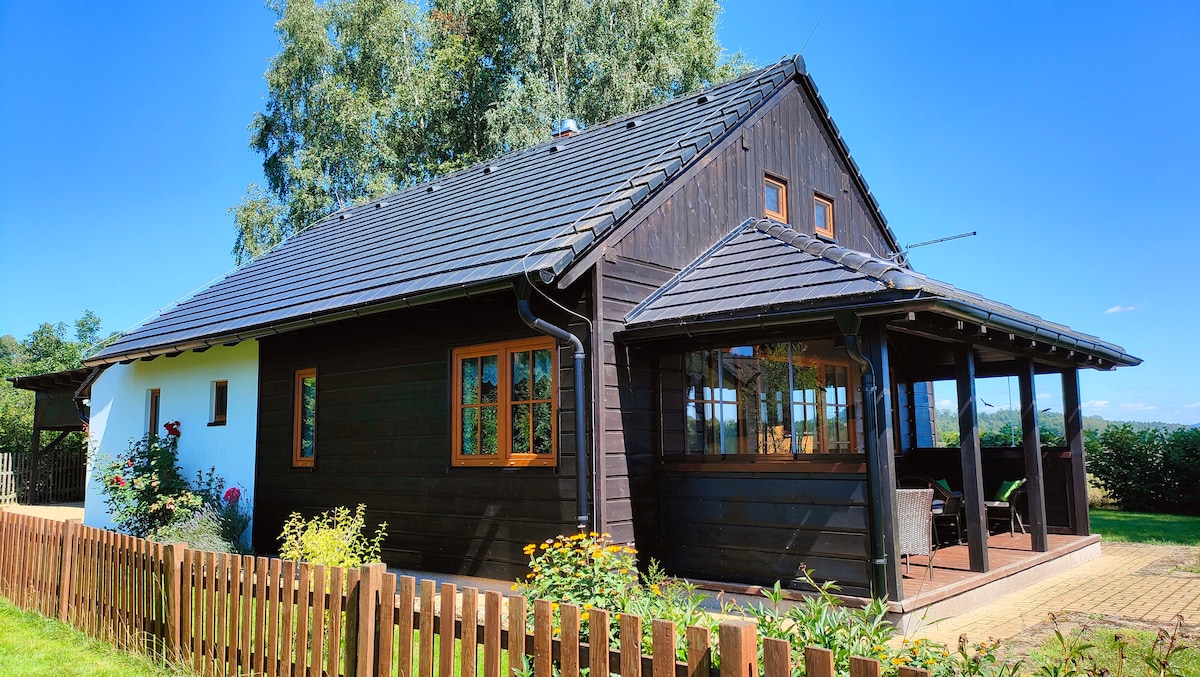 Our Cottage is a newly renovated building from the turn of the 19th and 20th centuries, located 1.5 km from the center of town Krasna Lipa in the part of Kamenná Horka. From 490 above the sea level you can explore the National Park of Bohemian - Saxon Switzerland and watch also the Lusatian Mountains. 3000m2 garden offers relaxing in the grass, in the rocking nets between the trees or refreshing in the bathing pond.