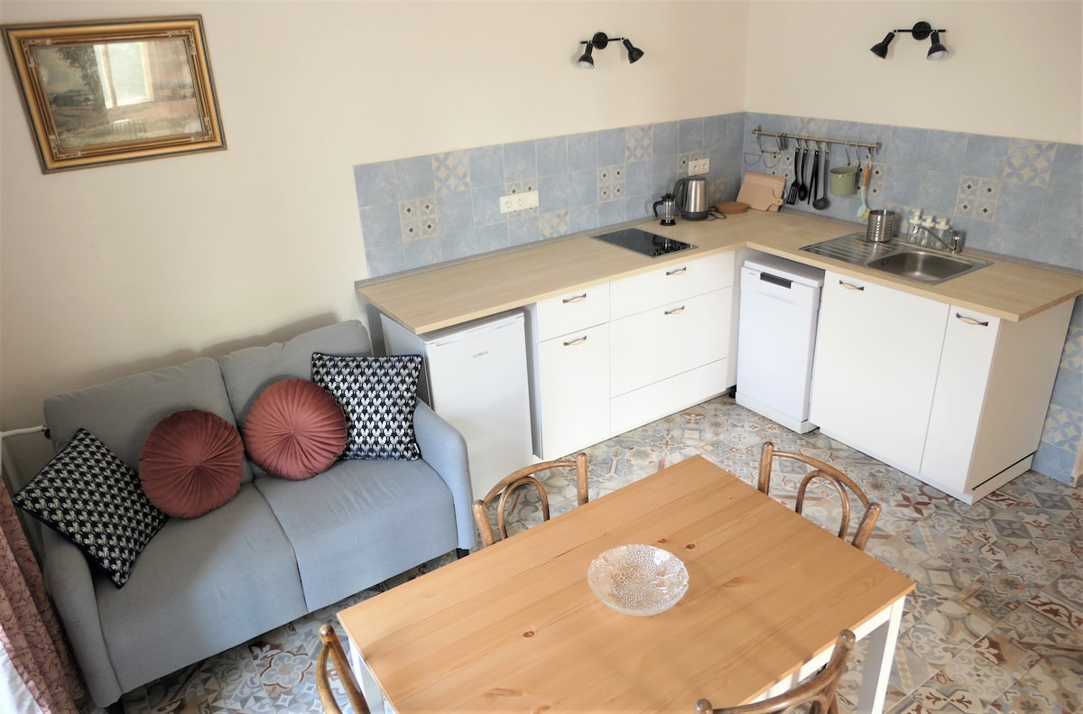 We rent two separate cozy apartments in our family house . You will have your own entrance to the apartment, private part of garden with a fire pit and children playground for use as well as a parking spot on the property for your car. Nabízíme k pronájmu 2 oddělené, plně vybavené apartmány v našem rodinném domě 5 min chůze od pláže. Každý z apartmánů má vlastní vchod a přístup na soukromou zahradu s ohništěm a s dětskými prolézačkami s klouzačkou, houpačkou a pískovištěm. Parkování na pozemku.
