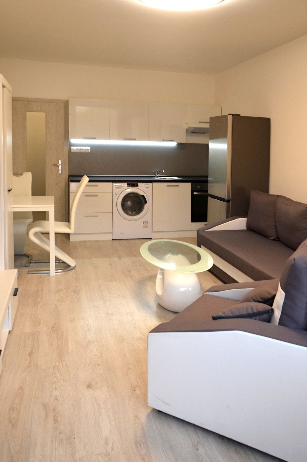 Skvělé místo pro toho, kdo hledá pohodlí a soukromí. Apartmán se nachází v centru Děčína a je plně vybaven: TV, WiFi, rozkládací pohovka pro 2 osoby, skříně, vybavená kuch. linka včetně sporáku, lednice, mrazák, pračka, sprchový kout, WC. Součástí apartmánu je balkon orientovaný na západ s krásným výhledem na Labe a Pastýřskou stěnu.