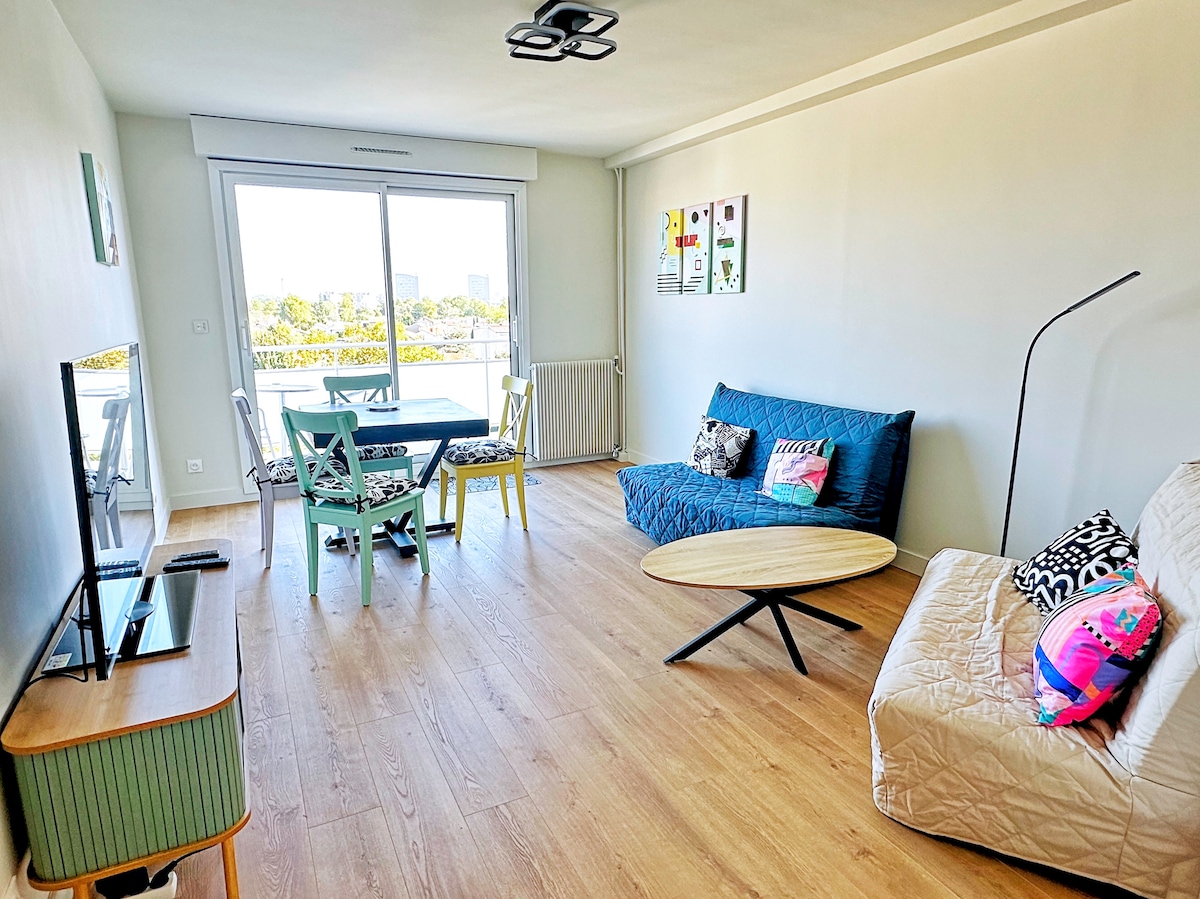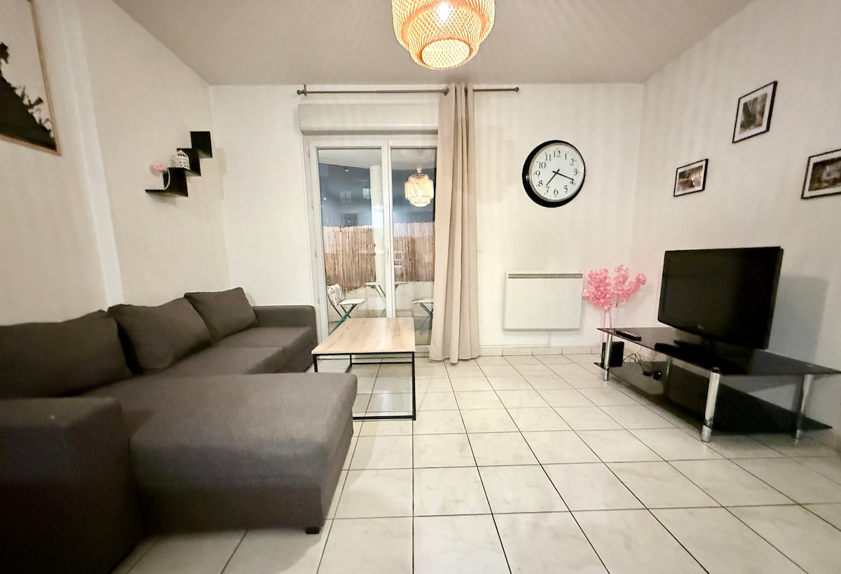 Situé dans le centre de Décines, appartement F2 de 44 m2 situé à 20 min de Lyon-centre, 10 min d'Eurexpo en voiture, 20 min de l'aéroport Saint-Exupéry en voiture ou par transport en commun. Au 1er étage avec ascenseur dans une résidence à proximité de tous commerces. Tout le mobilier est neuf. Cuisine équipée ouvrant sur séjour avec canapé convertible 2 places, TV connecté, wifi, chambre avec lit 2 places et TV, salle de bain, toilette.