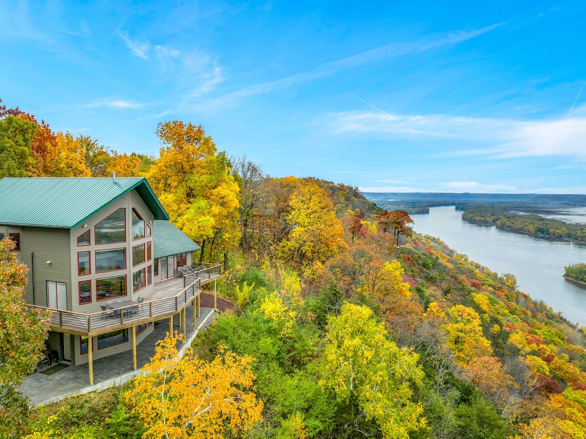 Eagles Landing is perched high on the Driftless Bluff with unparalleled views of the Mighty Mississippi River. This stunning Riverview home has all the amenities you could possibly need or want including a private outdoor hot tub. All the bedrooms have views of the river including the 24x15 Master Suite. There is a 18x25 Theater room as well as a shuffleboard, bar and Firepit for your enjoyment. This home promises to not disappoint you for your next getaway!!! Book Now
