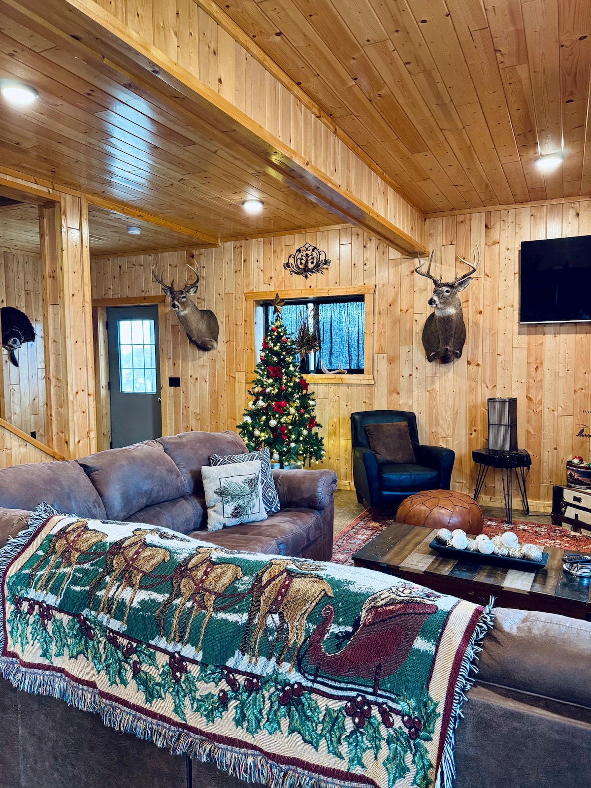 Kick back and relax in this calm, stylish space. This recently purchased and renovated cabin is exactly where you want to be! * Hot Tub * River View * Privacy * King bed in loft * Queen murphy bed * 2 bathrooms * Cable TV, 2 smart TV's , Wi-Fi * Wrap around deck * Fire pit * Gas stove fireplaces, just flip switch * Kitchen items included (cookware, etc) * Gas grill * Bed & bath linens supplied * Games, books * PEACE & QUIET * We do allow dogs ($110/stay) max 2 dogs. NOT LEFT UNATTENDED