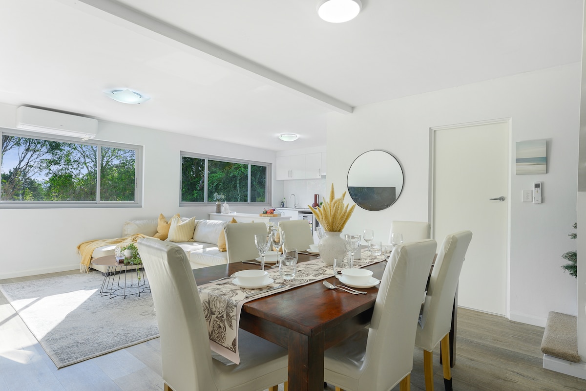 Welcome to our loft bungalow near Collaroy Beach, offering modern comfort and beachy charm. Enjoy the open-concept living space with tasteful coastal decor and your own private outdoor space. Fully equipped modern kitchen, laundry and luxury bathroom with rain shower. Comfortably sleeps 4 across the two Queen bedrooms with quality linen (the loft bedroom has a sloped ceiling, taller guests might be more comfortable using the primary bedroom.) Perfect for your next beachy getaway.