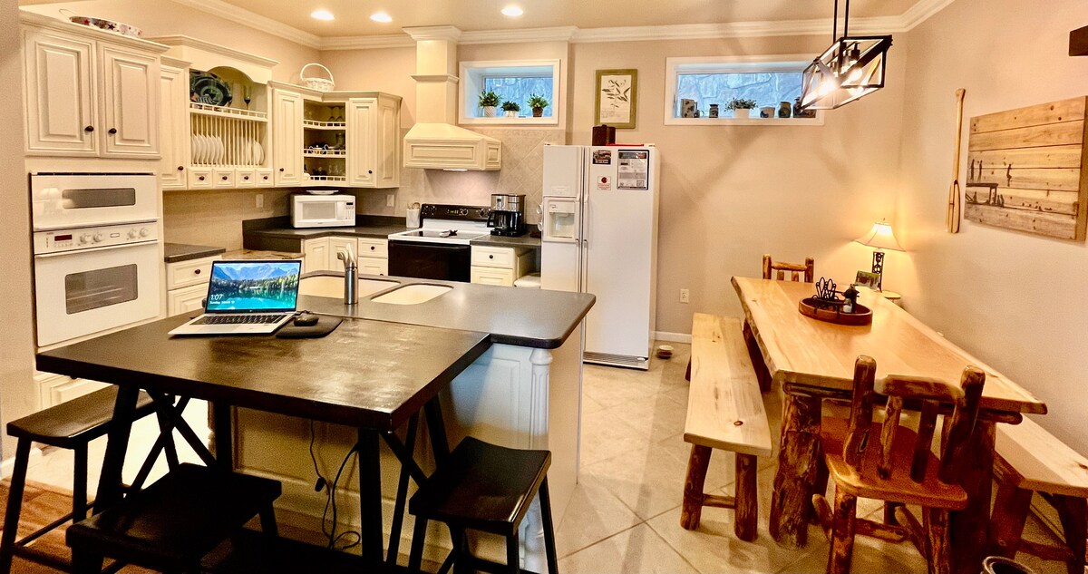 《广告狂人》湖畔别墅*湖滨*适合家庭和狗狗入住*户外电影体验*热水浴缸*距离WISP 1.8英里*工作空间*木制婴儿床!