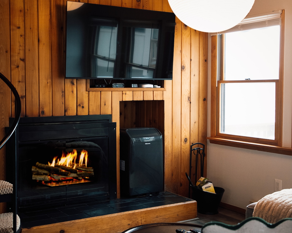 舒适的湖畔度假胜地|热水浴缸|加大双人床 + 壁炉