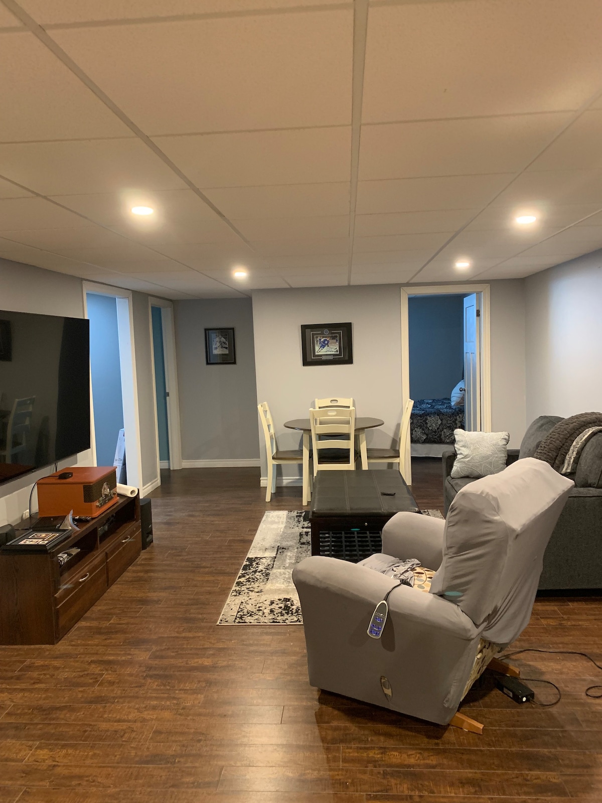 The apartment is located on a quiet cul-du-sac in Deer Lake. It’s centrally located and only 5 minutes drive to the airport. The Deer Lake beach is just a few minutes walk. This property is brand new and features leather furniture, a king sized bed, all brand new appliances, a heat pump for heating and air conditioning and cot for an extra guest. There’s wifi, a smart TV and satellite.