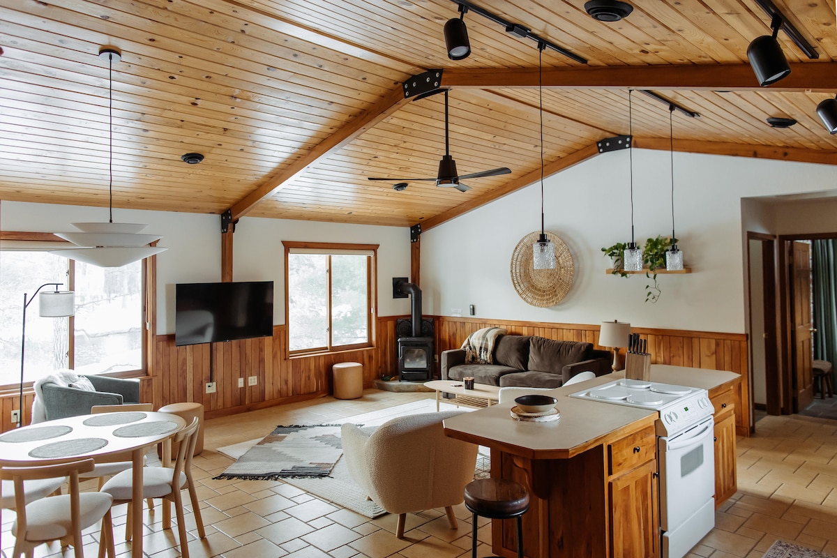 This woodland cabin has all the modern conveniences of home (air conditioning, fast wifi, whirlpool tub!) while offering northwoods peace and quiet. Surrounded by public forest and near the Sturgeon Lake chain, hours of outdoor activities await you. If you'd rather spend your time indoors, this comfy cabin has everything you need for a romantic getaway, a family vacation, or a weekend with friends. We welcome pets (and their owners)-- please review our pet policy before booking (see below!)