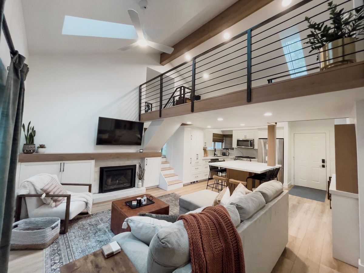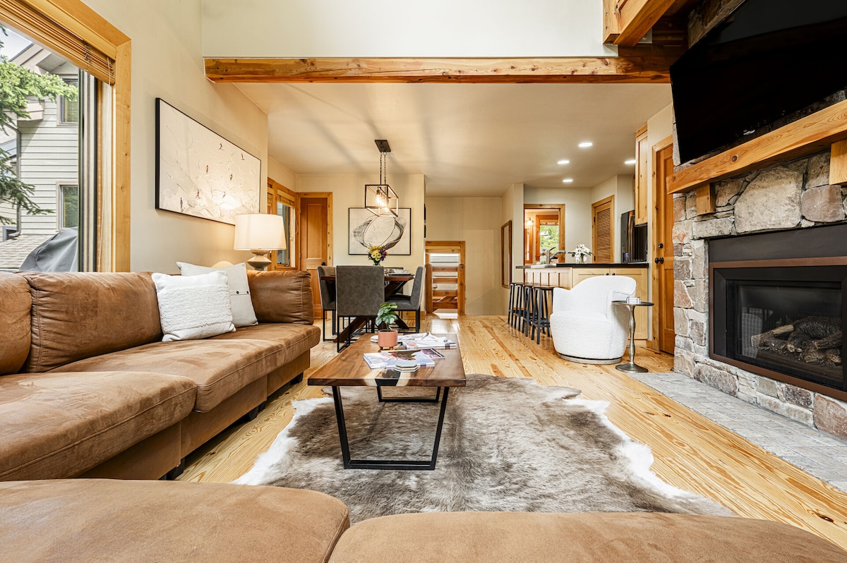 This trendy designer townhouse is the perfect place to stay in Park City for quick access to Deer Valley and Park City Mountain. After a day of skiing, hiking or biking, relax by the fireplace or in the private hot tub. Just a 5-min walk to Main Street for dining, shopping and drinks. Just a 2-min walk to the city bus stops for a free ride to all 3 ski resorts. Or, walk 10 minutes to the town ski lift. One reserved garage parking spot included, plus a large storage unit for all your gear.