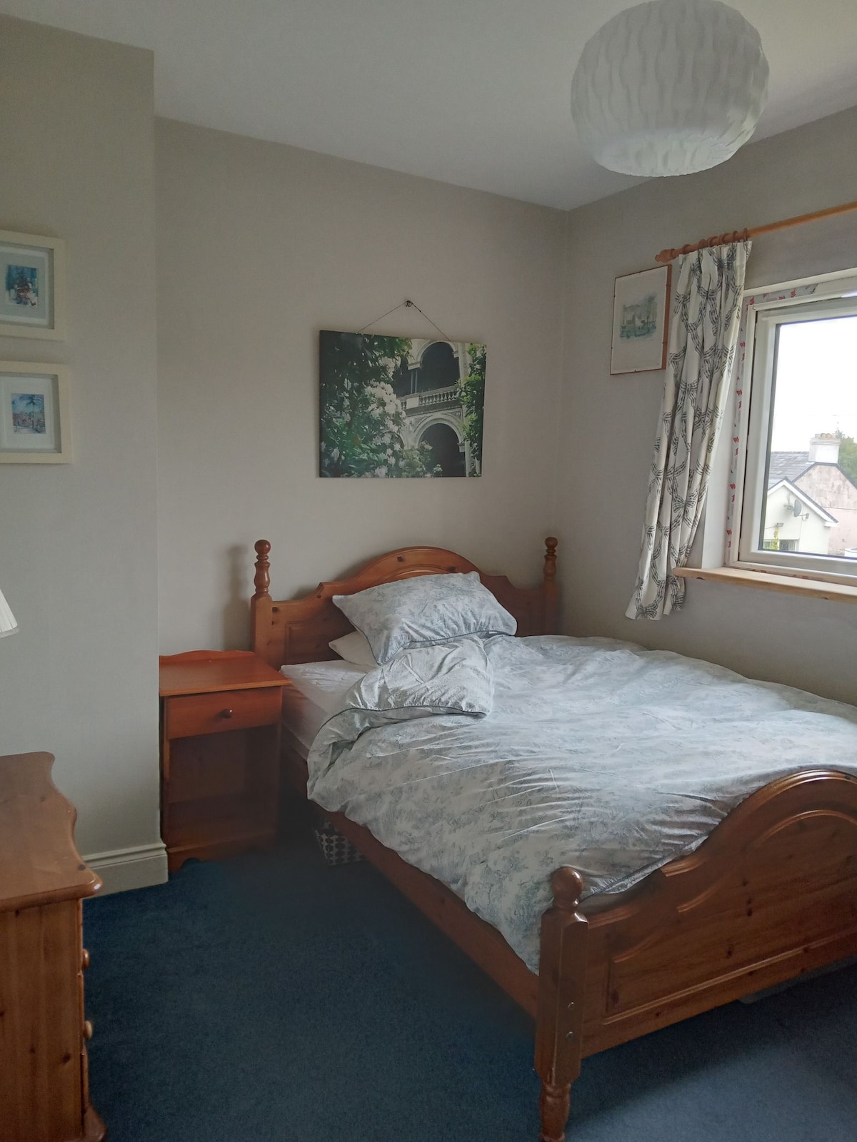 Bedroom in a large house in a quiet area. Shared bathroom. Room is for one person no guests Shop Restaurant Chemist Doctor Hairdresser Dry cleaners Dentist Bar all within 2 mins walk. Bus stop to City 10 mins walk. The City Centre is 5 km from the house. The airport is 6km from the house No cooking or access to the kitchen. Kettle fridge and microwave in the bedroom. Ring camera at front door We only accept bookings from account holder