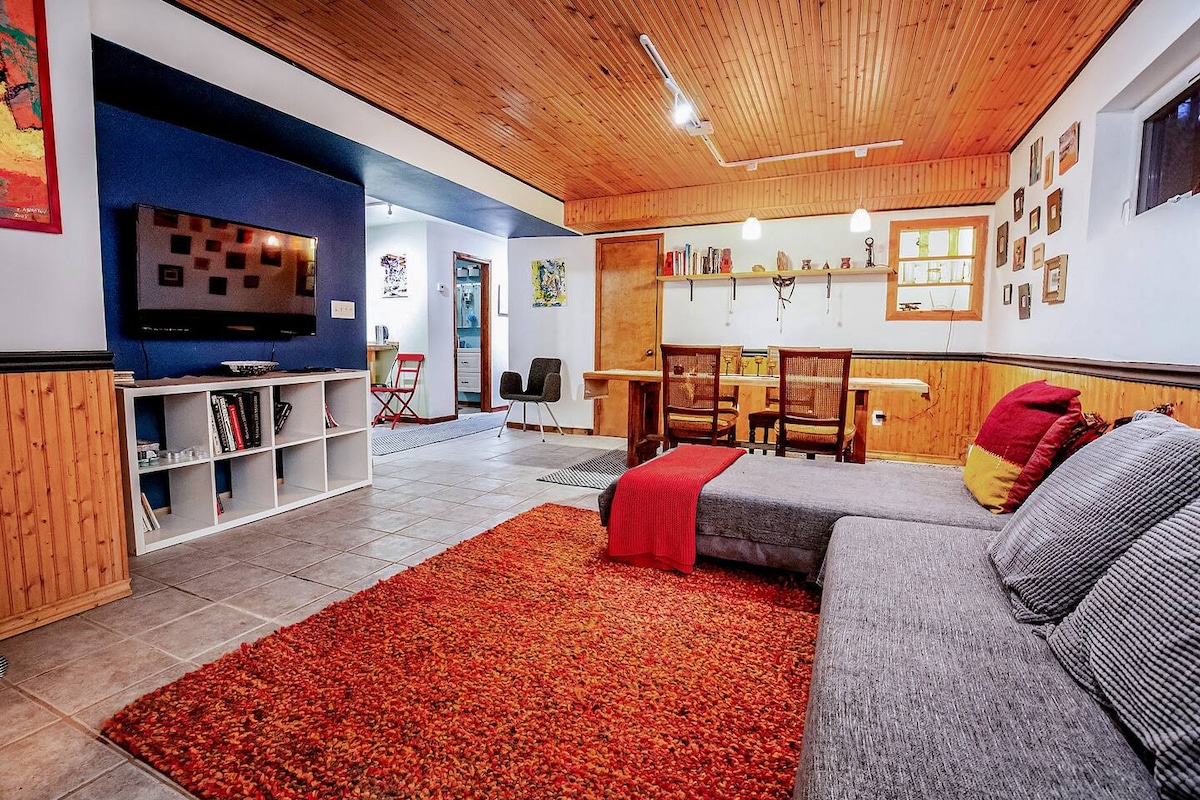 Ultra Chic Cottage set high above Greenwood Lake with Private beach and lake front community access. Minutes away from Mountain Creek Ski Resort, Spa & Water park, Mt. Peter Ski & Tubing, Warwick creameries, breweries & vineyards & apple picking. 1 BR, 1 Bath, play/office/common room. Huge wrap around fenced in deck with Mid century modern fireplace allows for scenic dining, lounging and around the fire gatherings. #LakeViewCottage_GWL Town of Warwick Short Term Rental Permit #P25-0245