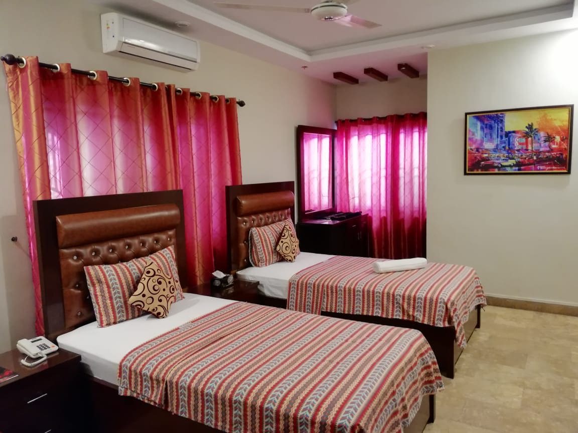 Family and friends 3 embassies within 100 meters radius makes it most safe area 1 km radius to 3 biggest malls(Dollmen/forum/Ocean mall/Emerald) Beach 10 minutes walk Famous food street deltans 5 minutes walk All public transport 1 min away 5 minutes walk to zamzmam street 5 minutes walk to zamzmam park 5 minutes drive to Clifton