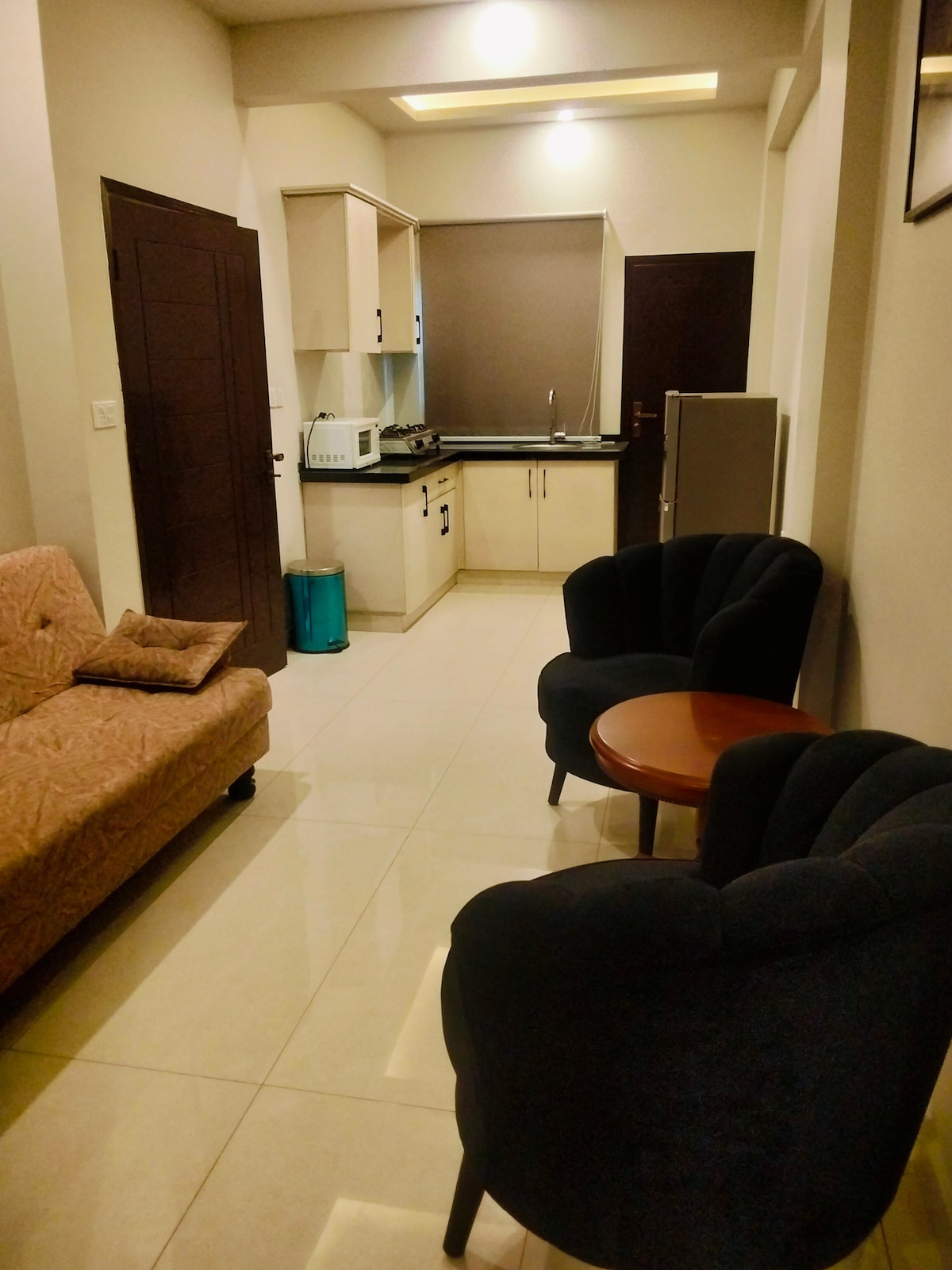 Feel free to book or message me first. Happy to answer any specific questions in advance at +92 344 481 triple 5 8. It's 1 bedroom ground floor furnished flat having small sitting area and Kitchen with separate entrance from the street in Clifton Area which is the city center close to famous shopping malls like The Forum, Ocean Tower. The Apartment has own fridge, TV. Iron. 3 seater sofa, small dining table and small kitchen with all necessary utensils.