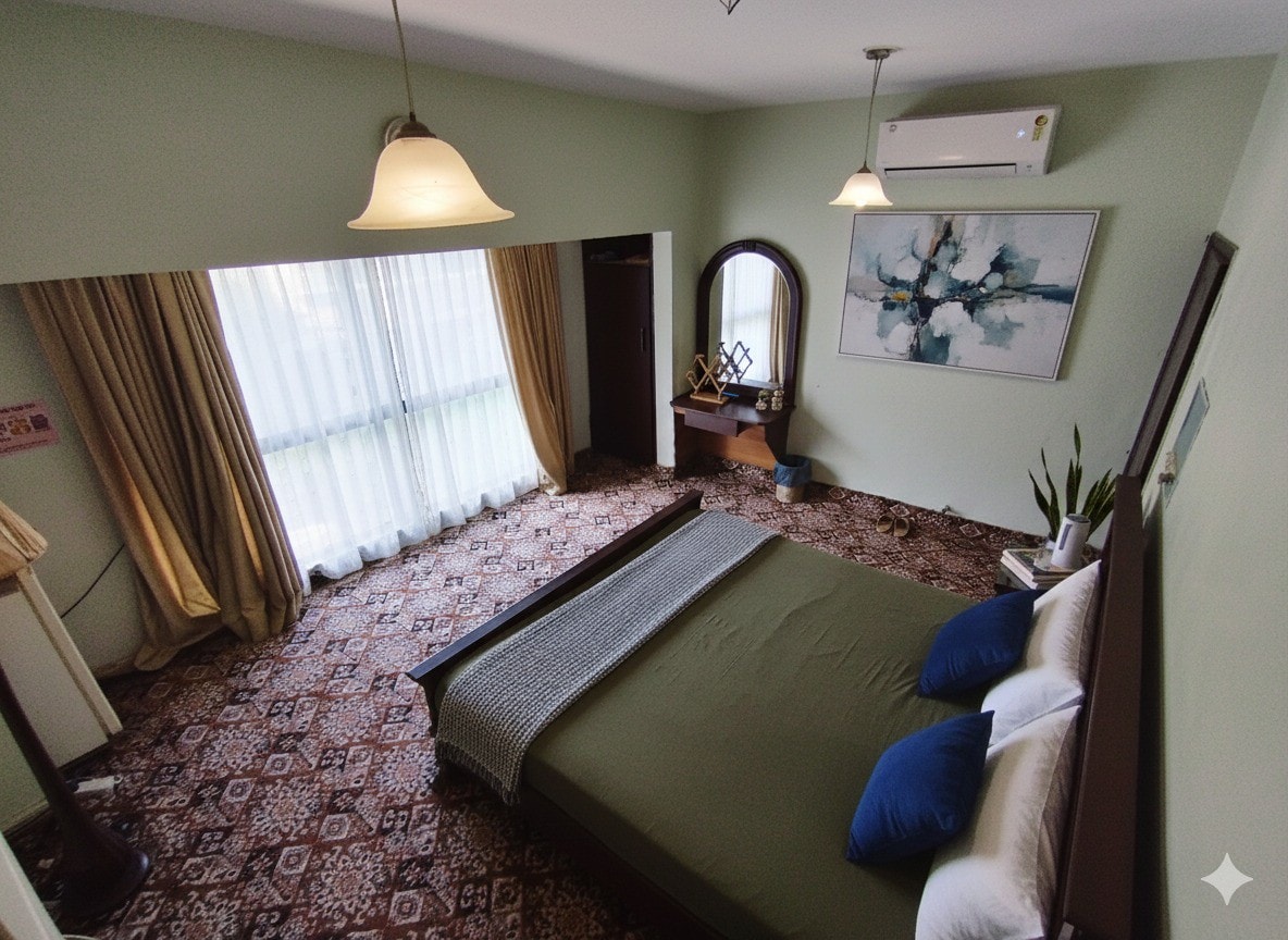 This comfortable double-bed room is ideal for 2-3 guests, offering all the essentials for a relaxing stay at 24-7 Hotel. Hotel Amenities: 24/7 access to the gym Room service Secure parking Nearby food spots, barbershops, marts, and hospitals Breakfast available for 1,000 rupees for 2 guests Extra mattresses available (additional charge) House Rules: No smoking No unmarried couples allowed No alcohol Enjoy your stay in the heart of the city with everything you need just steps away!