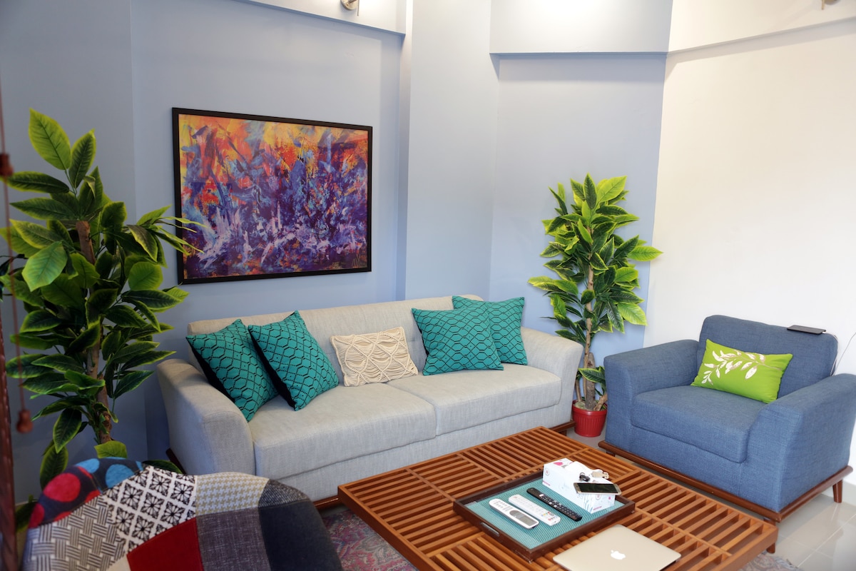 This interconnected penthouse is fully furnished and designed by professional architects. We provide you with luxury, comfort and convenience during your stay. This penthouse has 1 spacious room, 2 lounges and 2 washrooms. One master bedroom, kitchen with dining area and a lounge. An extra mattress can be added in the lounge (optional). It is located in the midst of various restaurants and shops. We offer all the amenities required for a comfortable and warm stay for our guests.