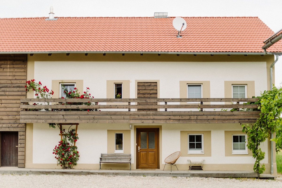 Wir bieten ein uriges Bauernhaus, geb. 1834 im Bayerischen Wald, mit allem was man für einen tollen Urlaub braucht. Ab 5 Personen buchbar. Wir haben viele Pferde groß & klein und Hunde. Tolle Ausflugsziele rund ums Haus. Das Haus hat 8 liebevoll eingerichtete Schlafzimmer, 2x Küche, große Essecke, sehr großes Wohnzimmer (Plätze für 20/25 Personen) DVD, 3x WC, 3x Bad mit Dusche und 1x Bad mit Badewanne, Waschmaschine, Holzofen, 22 km von der A9 entfernt (AS Hengersberg)