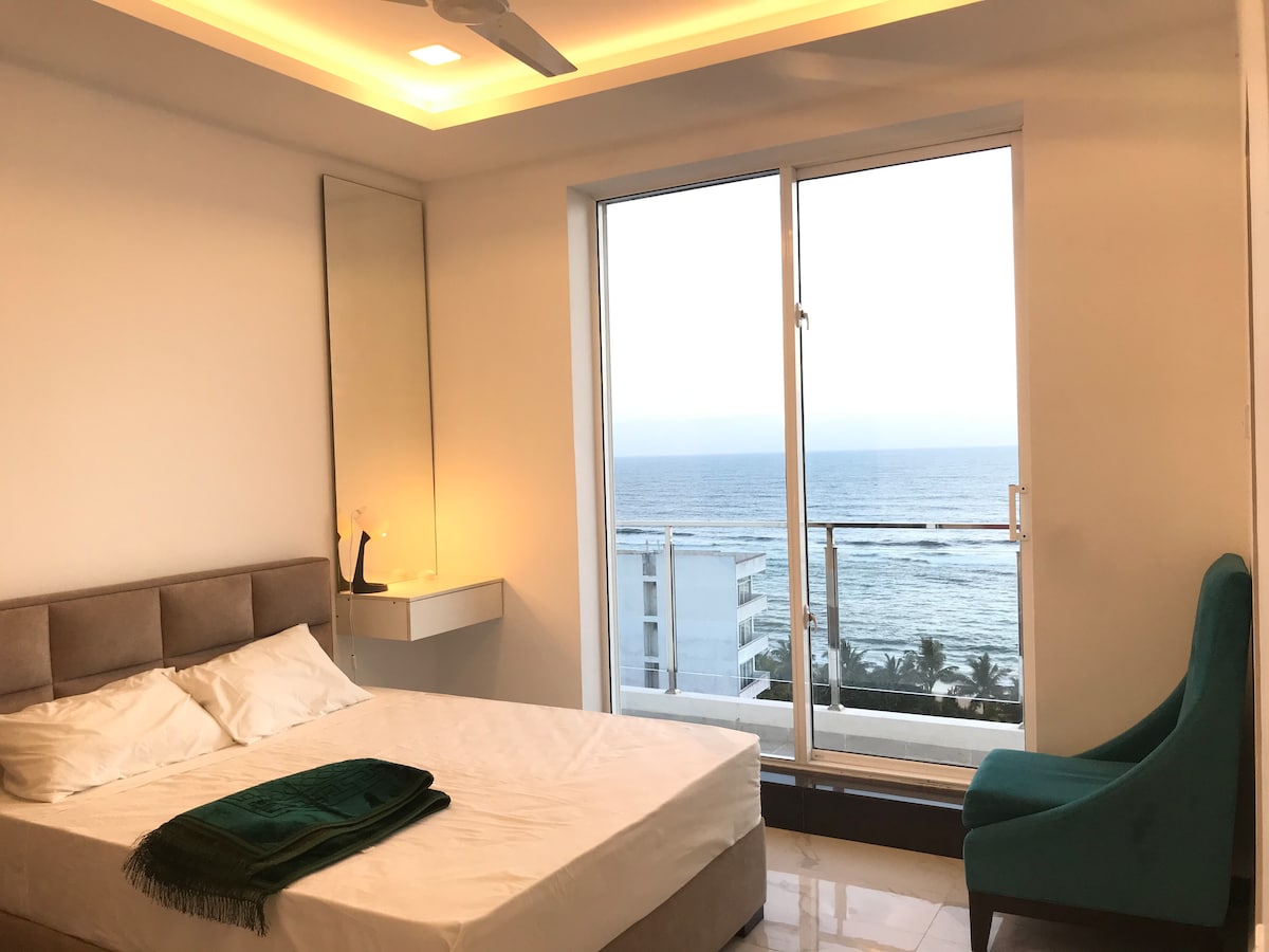 Beach Staycation Executive Luxury Flat, 180° panoramic view of the glistening Indian Ocean and Colombo coastline. The flat is 15 -20 mins to downtown Colombo and a 2 minute walk to the beach over the train tracks. The apartment building offers access a rooftop pool & 24/7 security. Our two-bedroom, three beds - suited to Family with up to 3 children, Master-King Bed & En-suite, Bed 2- Queen and loft single bed. Guest bathroom. Your Host is A Superhost. Not suited for very young children.