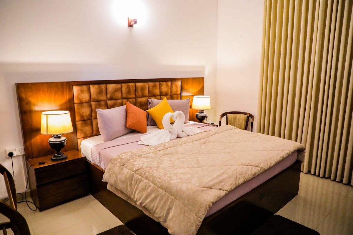 Grand home for vacations, reunions, events in Colombo suburb. Unique indoor outdoor space. Sleeping accommodation for 5 couples and one single. Total of 11 people. Two more kids sharing bed. Full-time caretaker and chef for Srilankan food. Partial view of Diyawanna lake and parliament. Can rent only one room in the main house, whole main house or only the guest house or all six bed-rooms. Guest number based fees. 500$ a day fee outside guests for events or gathering. Bedroom based fees