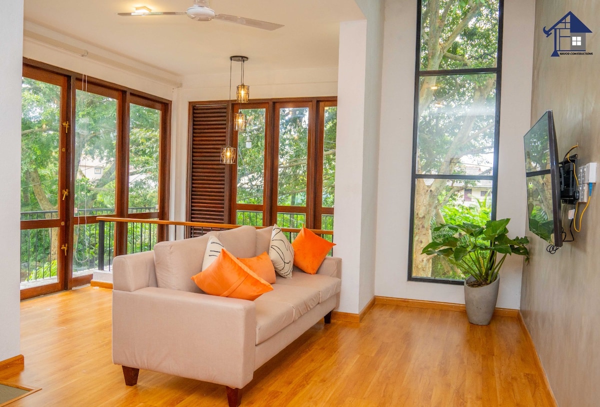 Accommodates up to 4 people: intended for families, couples and ladies. Two bedrooms with AC, en-suite bathrooms (with hot water), a comfortable living room, dining, kitchen, WiFi, private entrance, and parking for one car. Easy access to public transport, the airport (~1 hour), and centre of Colombo (~20 mins). 5 min walk to supermarkets and shops and a 5 min drive to restaurants.