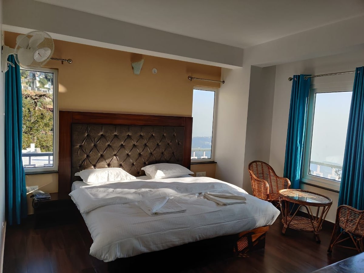 Nature’s Cove Jasmine – Nestled in the tranquil foothills of the Himalayas, this cozy room offers stunning mountain views, along with a private, exclusive garden and lawn. Enjoy unlimited tea, complimentary breakfast, and a choice from our continental menu. Relax on your private balcony, or savor meals from our vegetarian restaurant offering Indian, Chinese, and Italian cuisine. Ideal for couples or solo travelers, Nature’s Cove Jasmine promises a serene and rejuvenating escape.