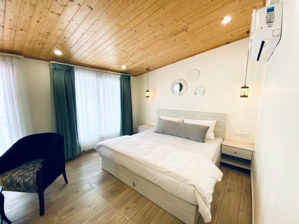 Nestled amidst serene greenery, this property offers stunning valley and mountain views with naturally pleasant weather, so there’s no need for AC. Designed to feel like home, it features three cozy rooms, a spacious hall, a fully equipped kitchen with utensils, and comfortable bedding. Guests can relax on the terrace while admiring the Dehradun valley and mountains, enjoy the convenience of both lift and stairs, and explore Mussoorie which is just 17 km away. Surrounded by peace, fresh air