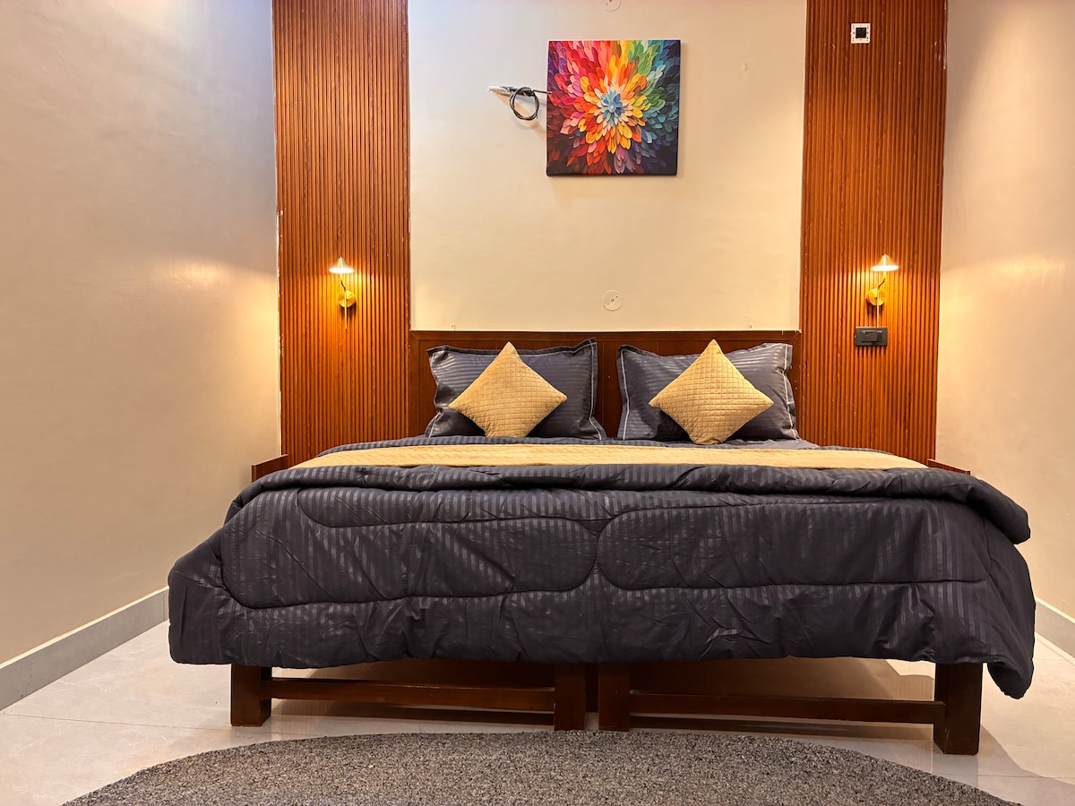 "Welcome to our tastefully curated homestay, where comfort meets style. Adorned with elegant panels, ambient studio lights, and a 55-inch TV, our space is designed for groups to unwind and relax peacefully. Please note, to ensure a peaceful environment for all guests, we kindly request lowering music by 10:30 PM, and we appreciate your understanding in refraining from loud noises thereafter.