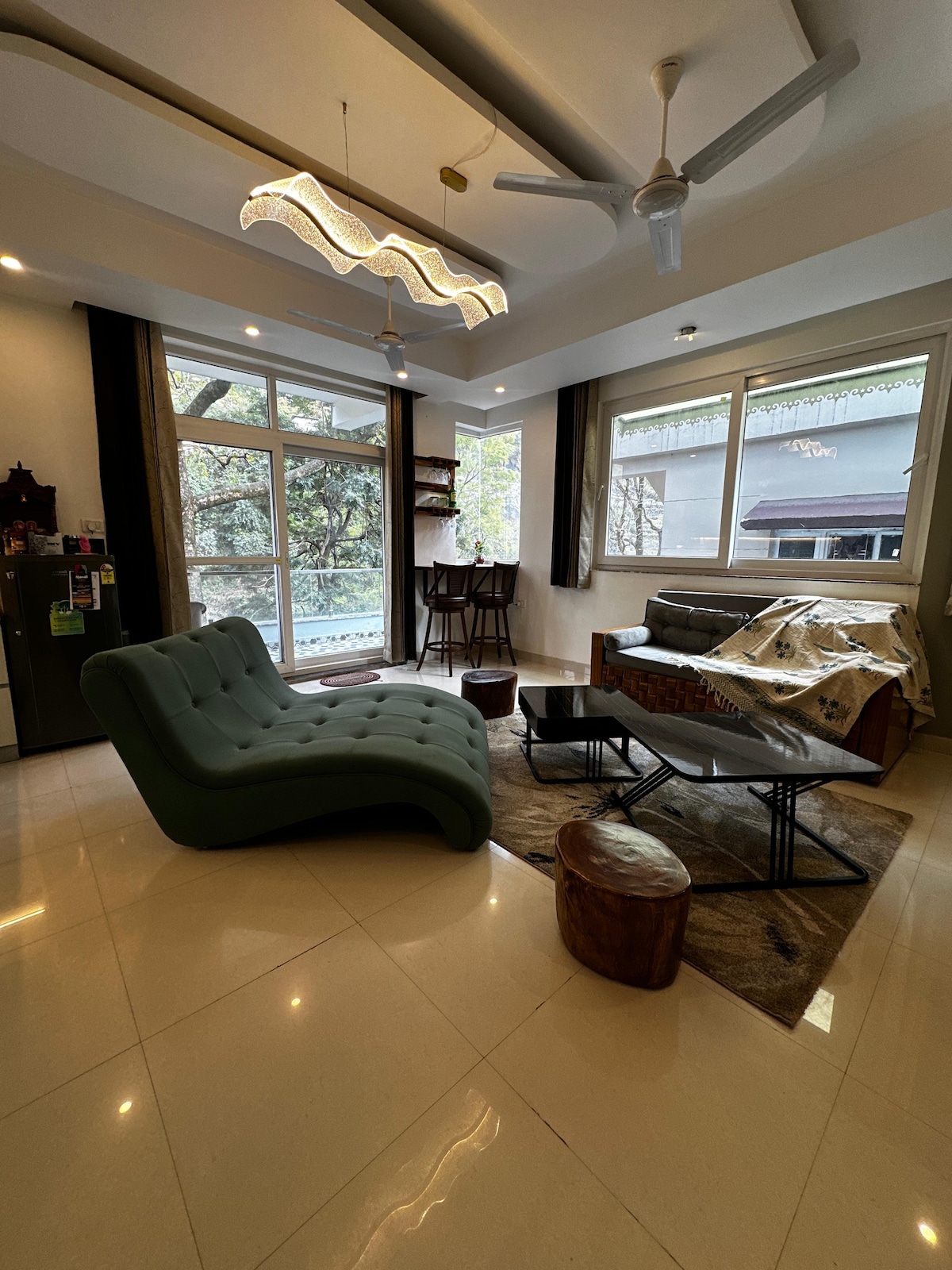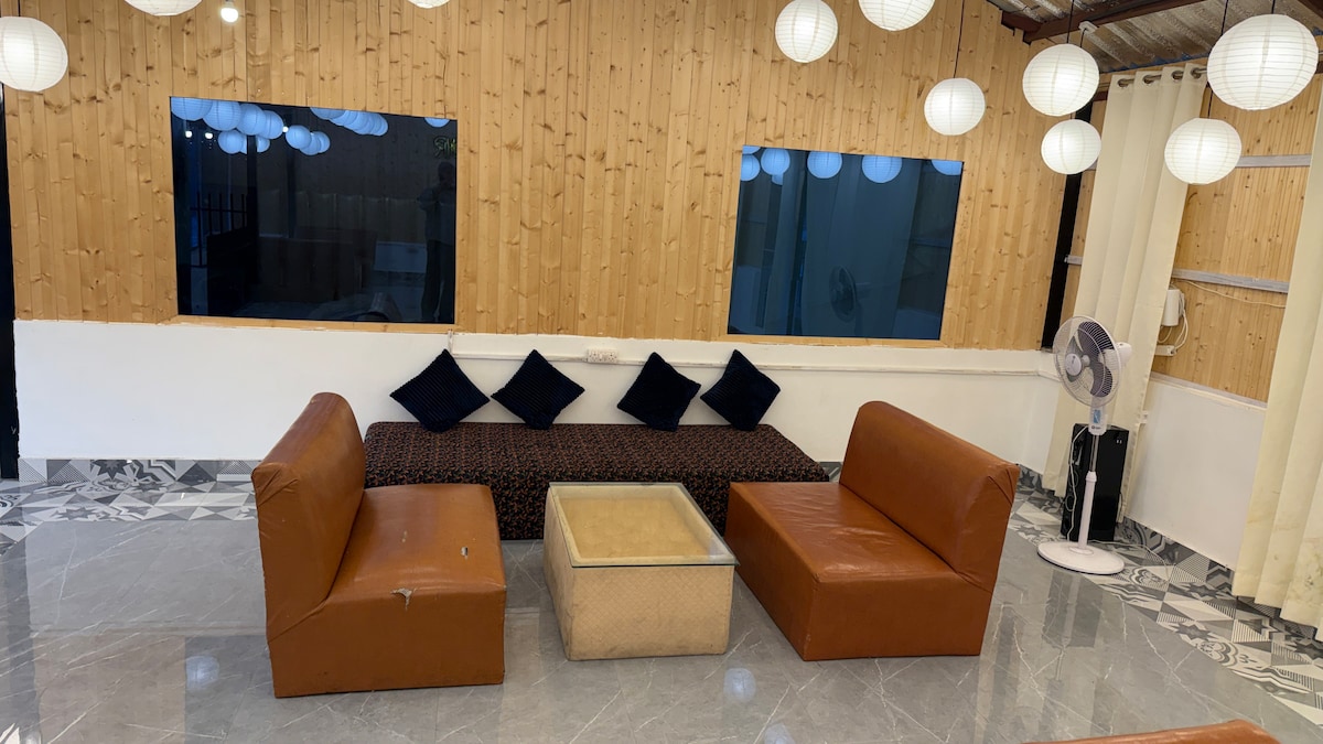 Your trusted Wabi Sabi has brought: A serene 3BHK retreat designed for those who crave a raw, authentic connection with nature. From the rear side, lush greenery and soft forest backdrops create a calming view. Guests can cook their own meals in the functional kitchen, share laughter in the living area, or simply retreat into silence with a book and a cup of tea. ❌ Only Boys Group ❌ Music beyond 10 PM ❌ Saturday Parties (we are open for mindful get togethers)