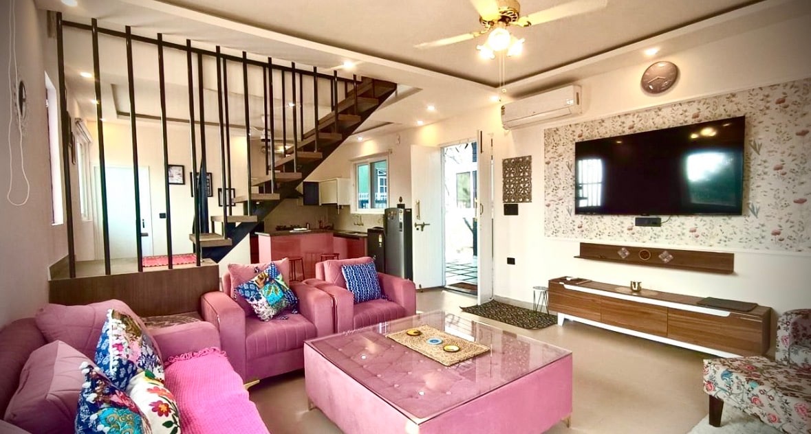 The Mussoorie Glow is a private 3BHK penthouse crafted for memorable stays. Warm lighting, cozy interiors & a Skyview Terrace make it ideal for families, groups & celebrations. ✨ Highlights • 3 themed bedrooms • Bar lounge & Netflix-ready living • Private Skyview Terrace • Equipped kitchen & modern bathrooms • Elegant décor with ambient lighting 🌄 Ideal for families, friends’ getaways & special occasions. Located in the peaceful Dehradun–Mussoorie hills for a comfortable, premium stay.