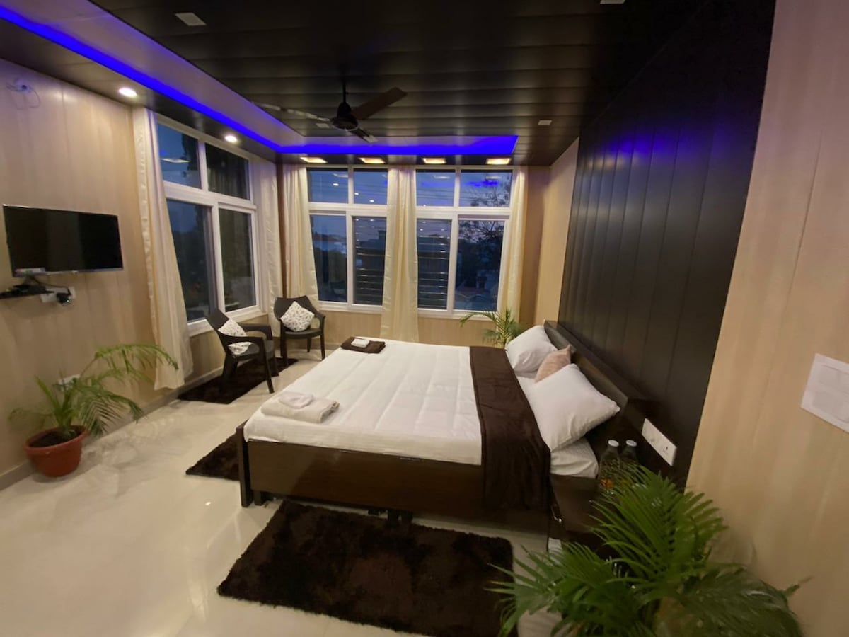 Discover our elegant fully serviced Studio Apartment in Dehradun! Featuring a cozy bedroom + sitting area, free Wi-Fi, AC, TV, and a private bathrooms. Work comfortably at a dedicated workstation in a space with high ceilings, large windows, 2 private balconies. Experience a fully equipped kitchen along with essential comforts such as a First Aid Kit, fire extinguisher, free parking, seamless self-check-in, board games, hair dryer and iron, etc