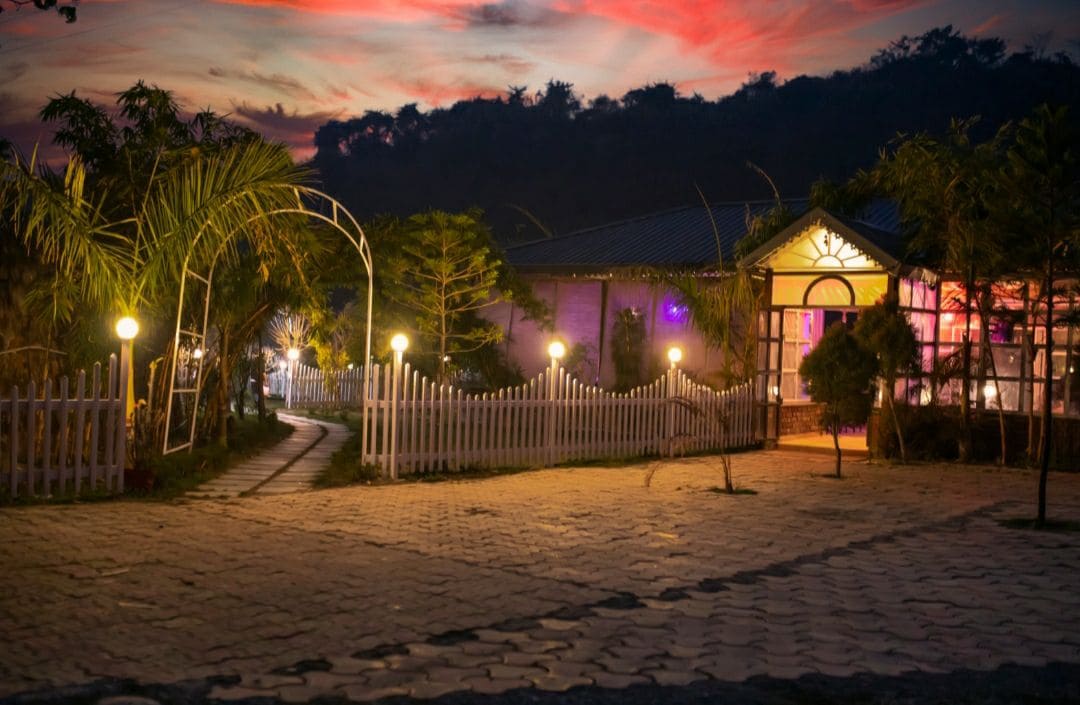 The cottage is exceptionally beautiful and unique. Located amidst natural beauty it has its own charm. This cottage is furnished with all the modern comforts and the ceiling gives you a tent-like feel. The seating area, dining area all are furnished with different pattern clothes tied up the ceiling which gives it a unique charm.
