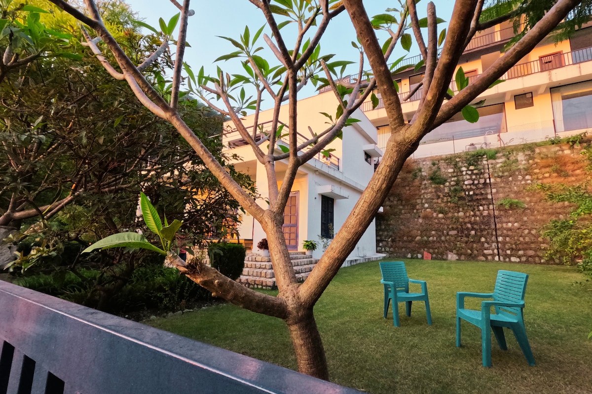“Live close to nature and you’ll never feel lonely. Don’t drive those sparrows out of your verandah; They won’t hack into your computer” - Ruskin Bond Pillowed in Garhwal region of Uttarakhand, Peacefully cradled in the Dehradun Valley & Nestled in the foothills of Mussoorie Pet friendly Luxury Villa with BBQ and Bonfire in sprawling lawn. Distant enough to escape the bustle of the city without being too far away. Overlooks Tons River & offers Panaromic view of Mussoorie