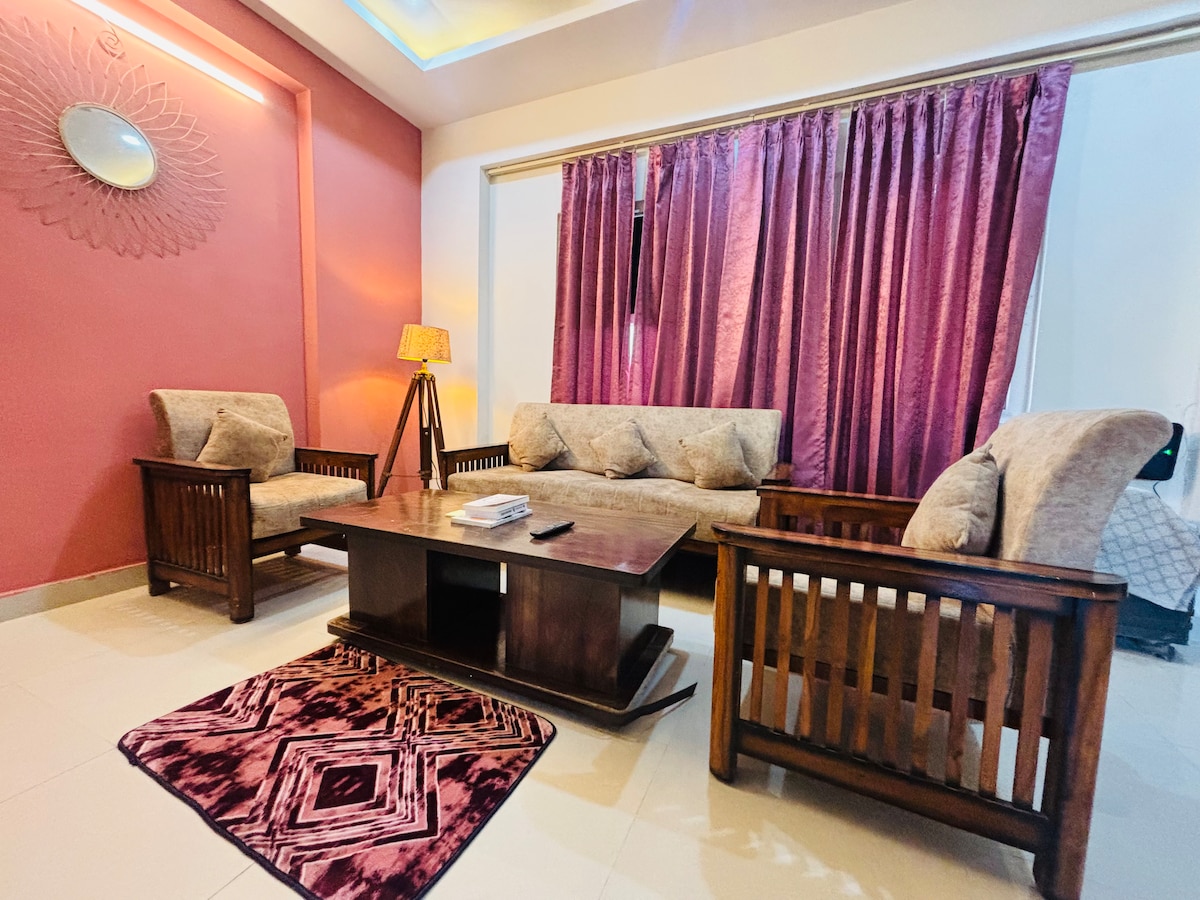 “Nilaya” is a cozy 2bhk home located on Mussoorie-Sahastradhara bypass in Dehradun. It’s fully furnished home with all modern amenities one could ask for. The apartment is comfortably approachable from Mussoorie (40 mins), Sahastradhara (20 mins) and robbers cave (23 mins). The area itself surrounds some really cool cafés on bypass and old mussoorie road. The house has ample sunlight and all basics are available in the nearby shops. Heaters are available on chargeable basis 1 snall car parking