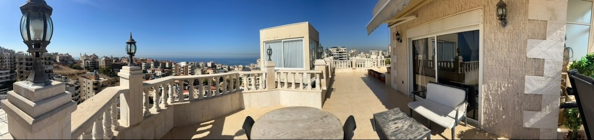 Looking for a quiet escape from the city? A space to retreat, relax and reset? Visit our bright loft and enjoy a stunning view of the Lebanese coastline with a magical sunset. A one bedroom apartment with a living room, kitchenette, bathroom and a large outdoor space. An ideal space for remote work and the perfect chillout spot to enjoy with a partner or friends.