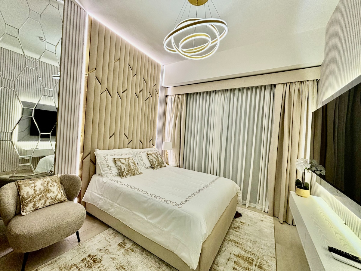 Experience urban luxury in our 1 BHK smart home, nestled in the heart of MBR City. This contemporary haven boasts cutting-edge smart home features that cater to your every need, ensuring an effortless and personalized stay. Located just a stone's throw away from Downtown. Inside, indulge in state-of-the-art amenities, modern décor, and panoramic views of the dazzling cityscape. Elevate your Dubai experience, making it not just a trip, but a lifestyle statement. ID402