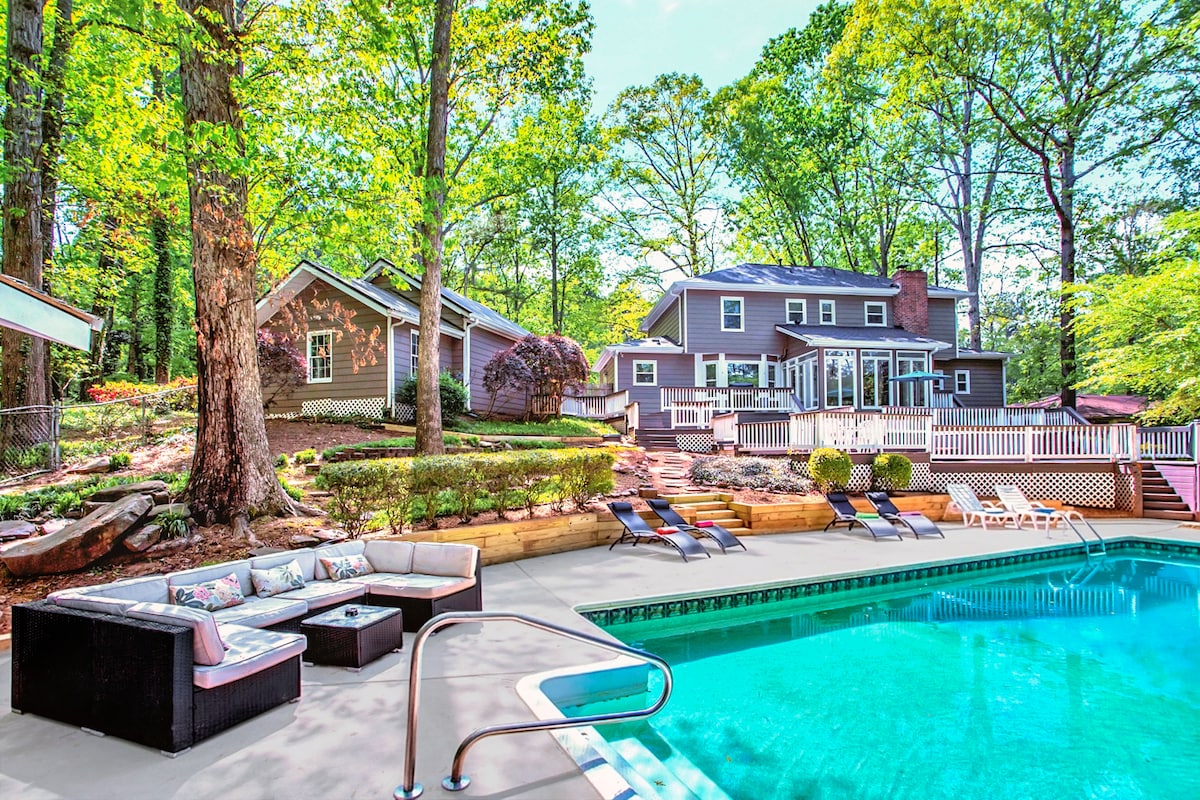 The Decatur Mullet has everything you need for your AMAZING Atlanta area stay! *Epic backyard - Fun House with pool table, bar area, and arcade games *NEW hot tub *Outdoor movie theater *Fire pit *Putting green *Outdoor games - Connect 4, Cornhole, Badminton *Location - 1.5 miles from East Lake Golf Club in wonderful, quiet neighborhood *Large smart TVs in each room *2 outdoor dining areas *5 Spacious bedrooms *3 full bathrooms *Fully equipped kitchen *Dining area can accommodate 12