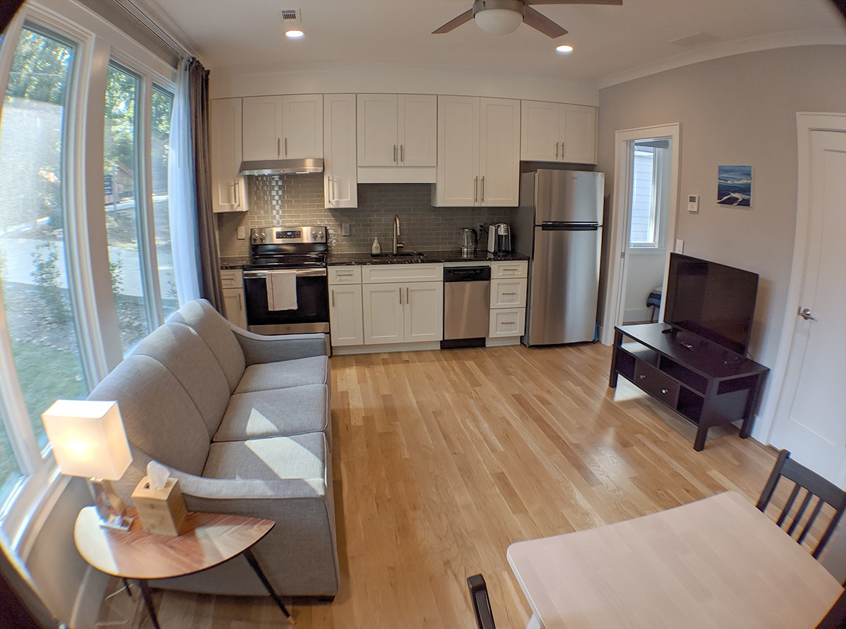 Welcome to our dreamy guest suite, complete with a huge private deck! This modern space is the perfect home base for your trip to ATL. The apartment is an 8 minute walk from the Edgewood / Candler Park MARTA train station and a 10 minute drive to Mercedes Benz stadium, State Farm arena, museums and theaters in Midtown, and world-class restaurants in Decatur. This is a private rear apartment in our newly built home, with a separate entrance. We live upstairs but you’ll have complete privacy.