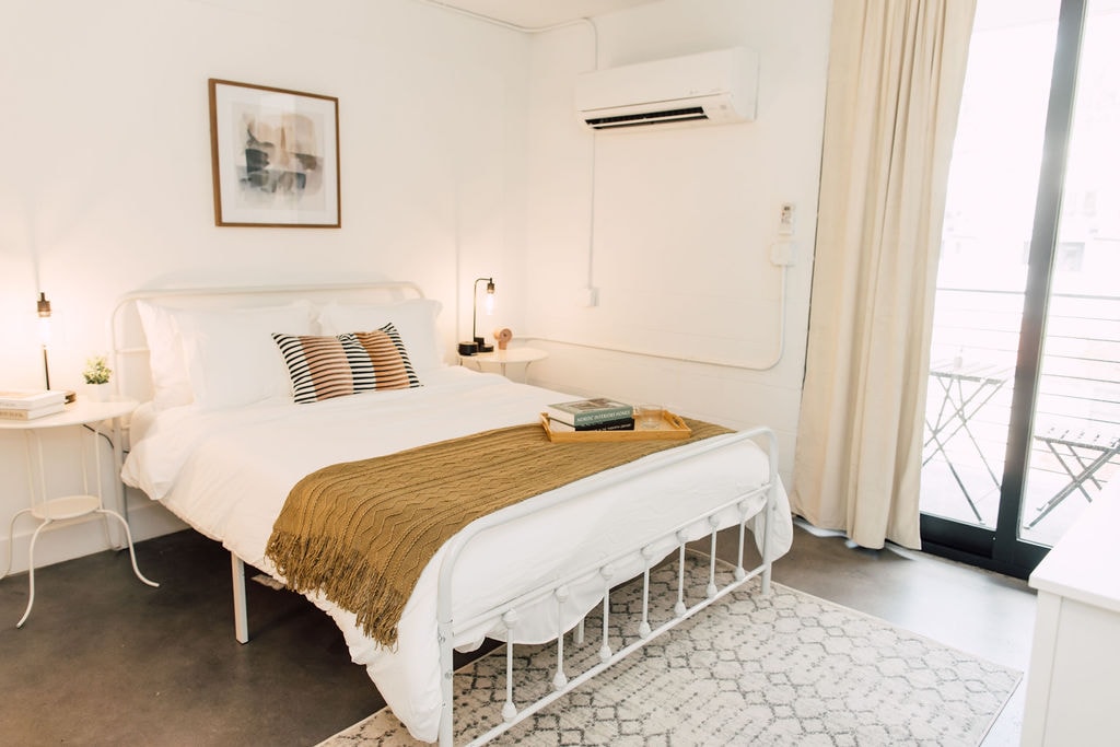 Boutique Hotel-Style Studio in Downtown Atlanta – Private Balcony & Rooftop Views Enjoy a boutique hotel experience in a studio apartment located in a beautifully restored 1964 building, fully remodeled in 2020. Each unit features similar but unique decor, with the same layout and amenities for a consistent stay. Please note: The photos represent the style of our rooms, but your exact unit may have slight design variations.